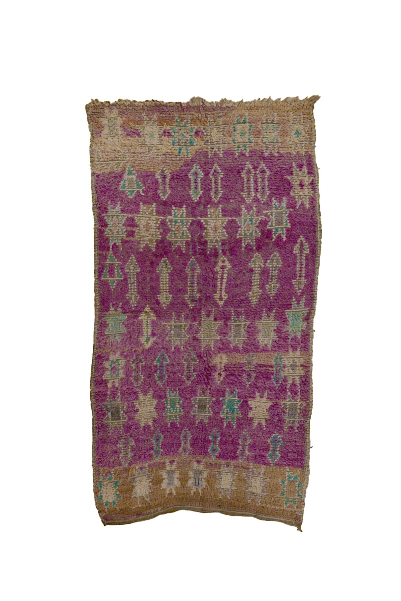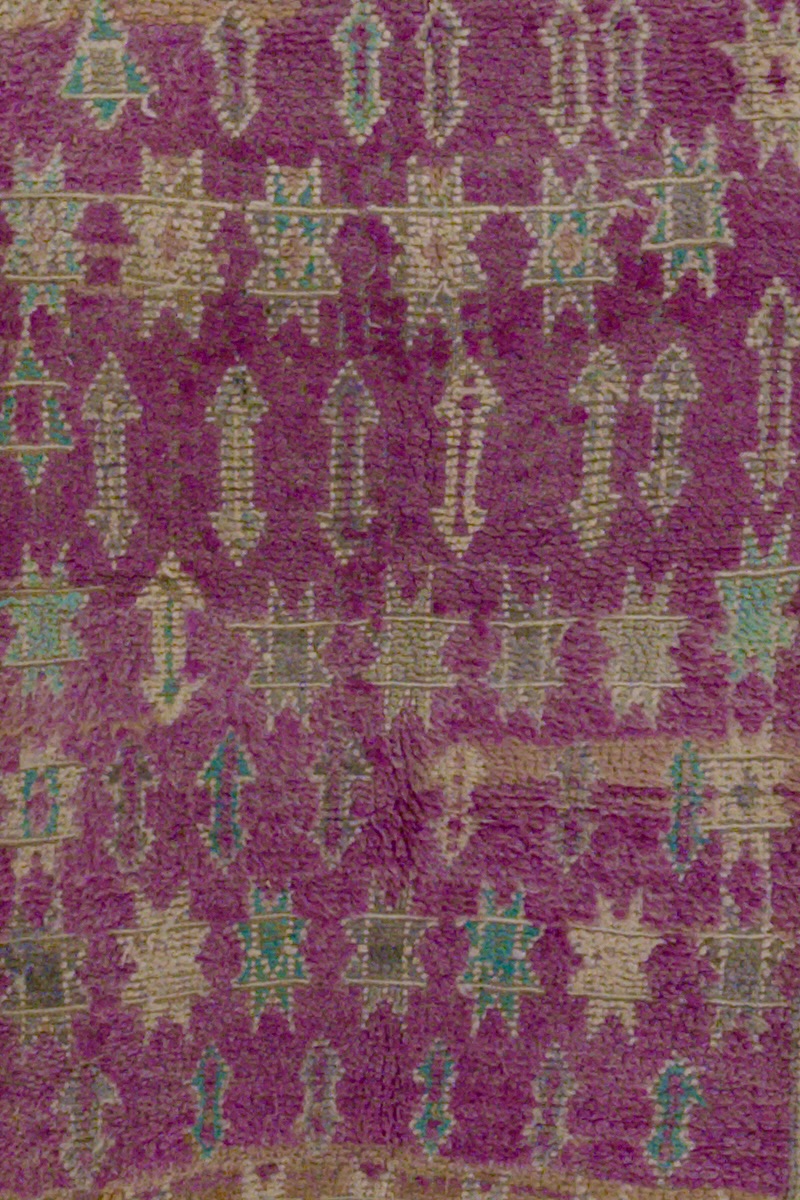 Telsent Nomad rugs are a vibrant testament to Bidwan craftsmanship, woven by the skilled hands of Nomad women from the Gigo region. Known for their purple colors and unique patterns, these vintage rugs embody a rich history and cultural heritage.